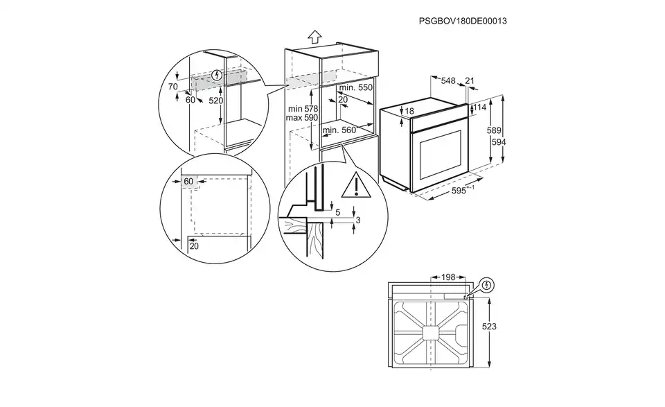 - AEG Einbau-Backofen OU5PB40ZSM BHT 59,5|58,9|54,8 cm