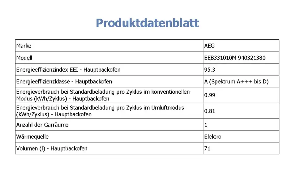 - AEG Einbau-Backofen OU5PB40ZSM BHT 59,5|58,9|54,8 cm