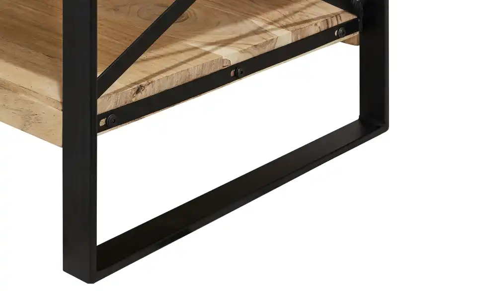 - Mehr zu Material Ablageplatten, Tischplatte und FrontAkazie natur massiv, gebeizt und lackiert Ablageplatte Massivholz Fußstange und ZierblendeMetall, lackiert