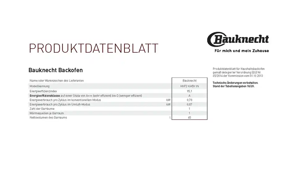 - Energieverbrauch Umluft / Heißluft 0,87 kWh