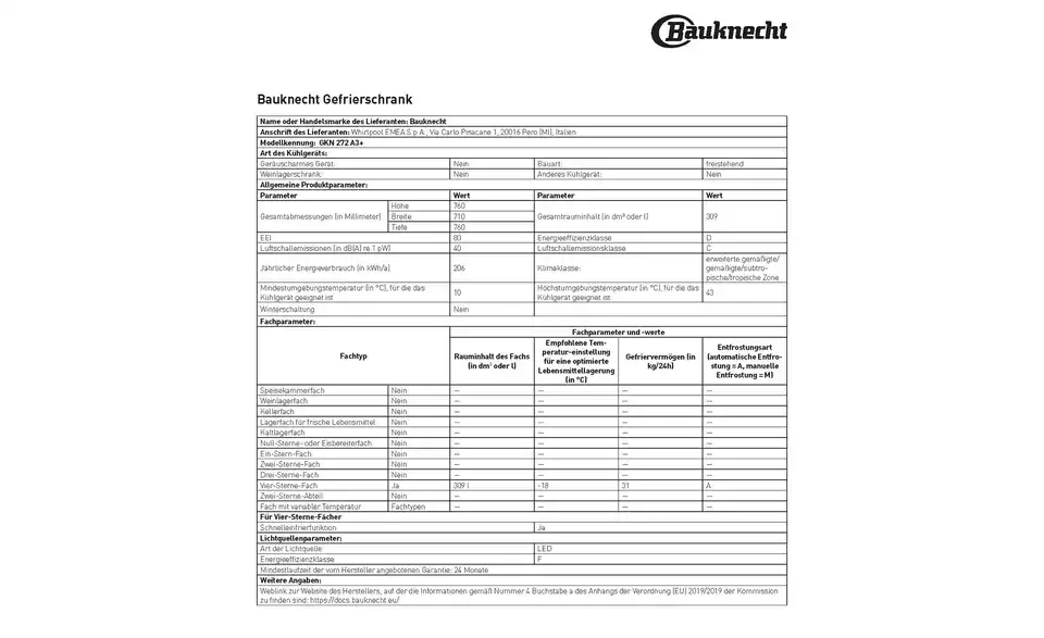 - Bauknecht Gefrierschrank GKN 272 A3+ BHT 71|175|76 cm