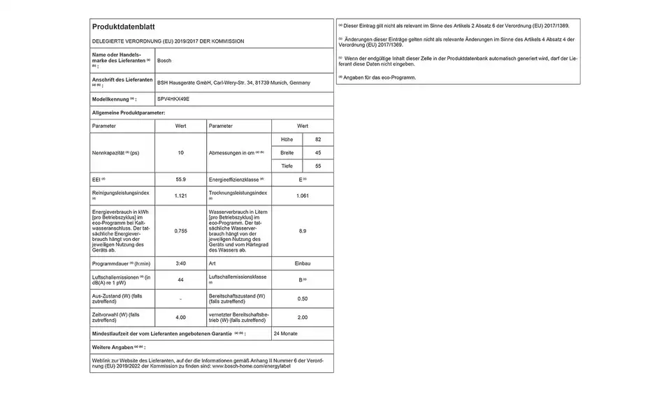 - BOSCH Einbau-Geschirrspüler SPV4HKX49E BHT 44,8|81,5|55 cm