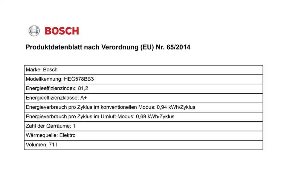 - Energieverbrauch Umluft / Heißluft 69 kWh