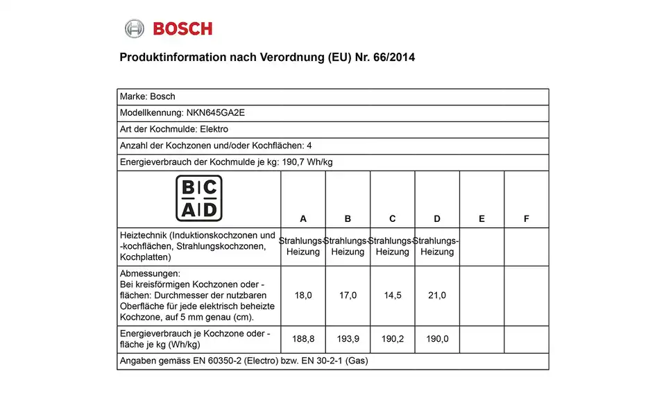 - Durchmesser Kochfeld hinten rechts 145 mm