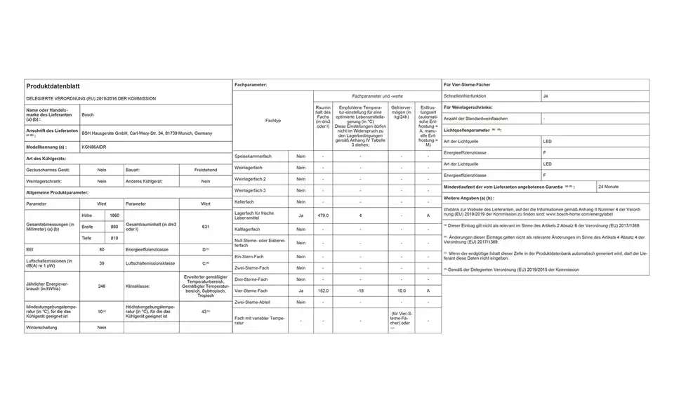 Gesamtnutzinhalt aller Frischhalte- und Kühlfächer479 Liter