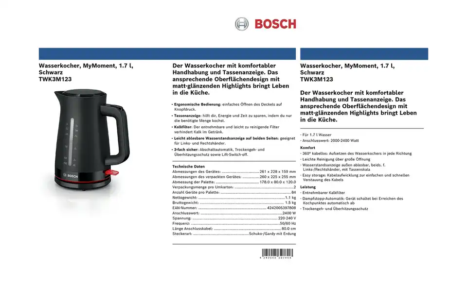 - Meisterkoch Wasserkocher WK-1712 TW BHT 16,5|27,5|21 cm