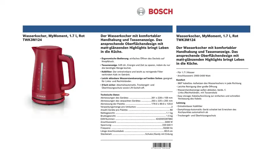- BOSCH Wasserkocher TWK3M123 BHT 22,8|26,1|15,9 cm