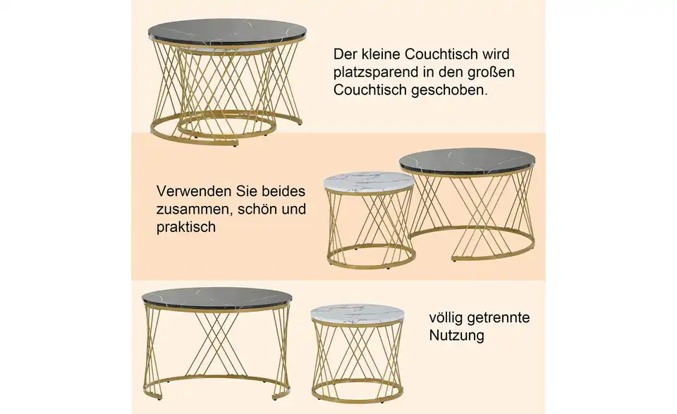 - Couchtisch 3er Set 3er-Set Maddalena H 42,5 cm, Ø 50 cm