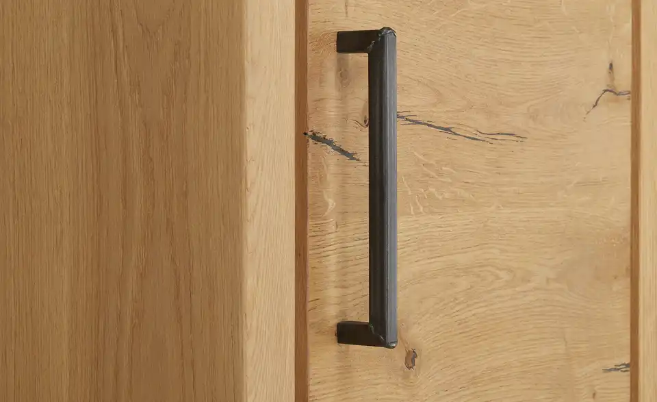 - Mehr zu Material Korpus und Front aus Tischlerplatte furniert in Eiche lackiert TischlerplatteVollholz-Platte mit zwei Schichten aus Eichenfurnier und einer mittleren Schicht aus Kiefer-Massivholz-Leisten
