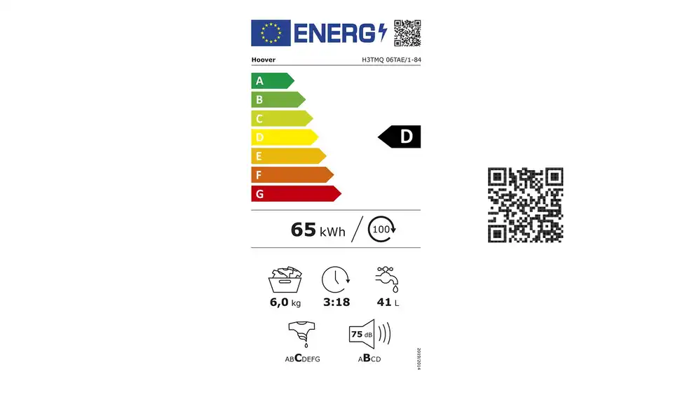 - Energieverbrauch bei 100 Wasch-Zyklen 65 kWh