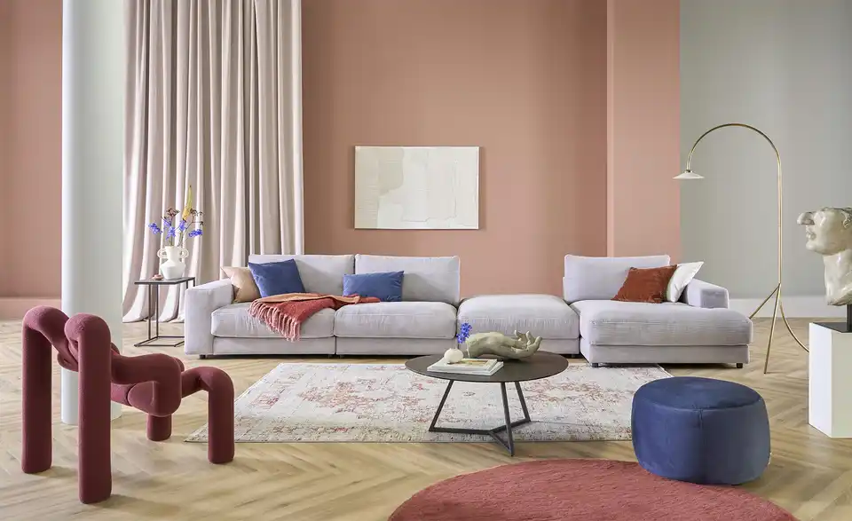- Mit losen Rückenkissen, gefüllt mit hochwertigen Füllstoffen und Federn