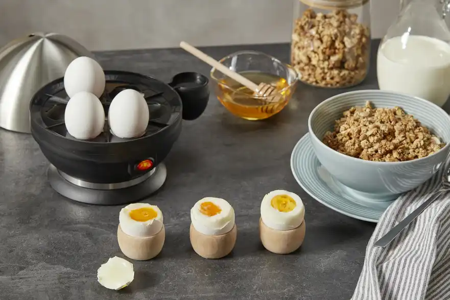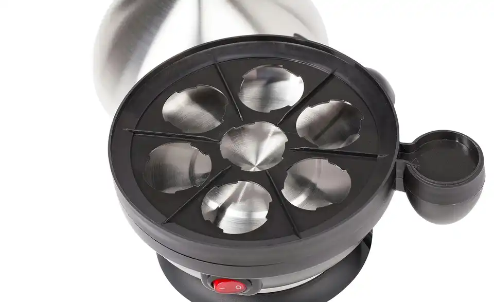 Der praktische Eierkocher bietet Platz für das Kochen von bis zu 7 Eiern zur gleichen Zeit. Er verfügt zudem über eine integrierte Edelstahlheizplatte und einen Alarm, der Ihnen anzeigt, wann die Eier fertig gekocht sind.