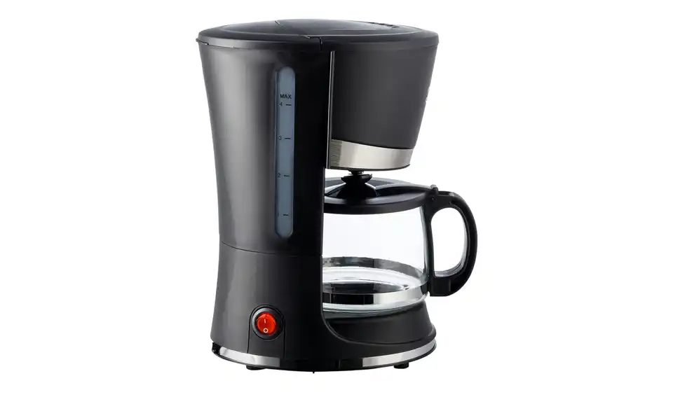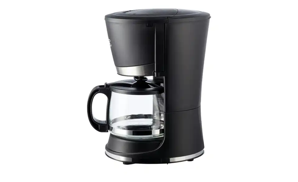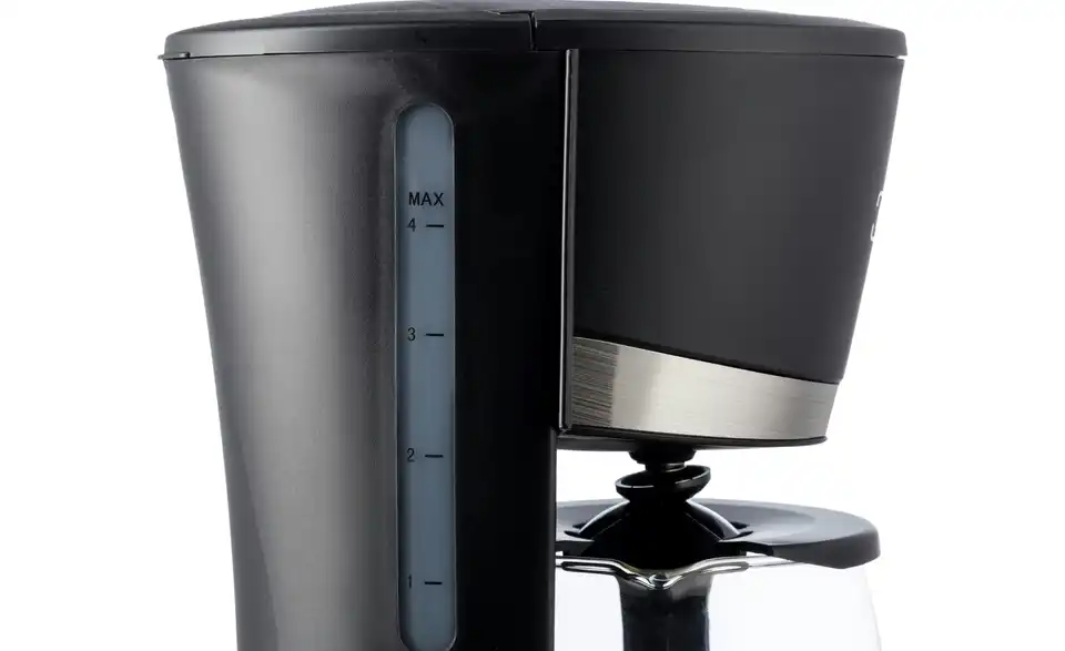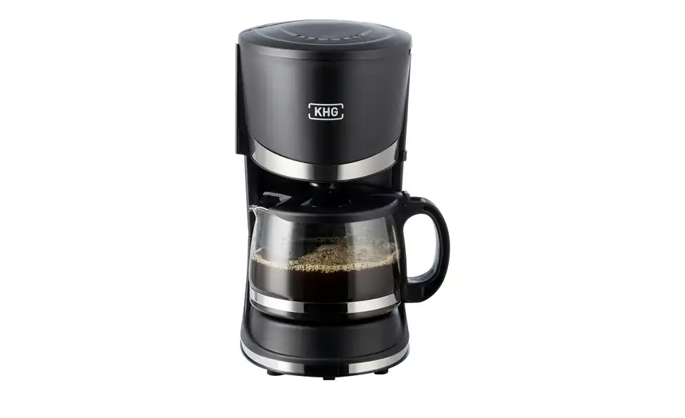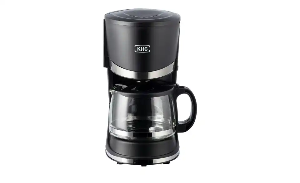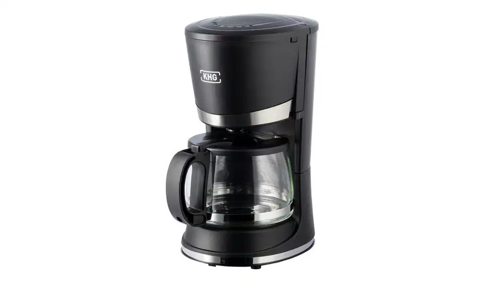 Der Kaffeeautomat KA-121 (S) von KHG ist für bis zu vier Tassen Kaffee gedacht. Das Design überzeugt durch die klaren Linien und die schlichte Formgebung. Das Gerät ist zum großen Teil schwarz. Silberfarbene Elemente im oberen und unteren Teil verleihen ihm zusätzlich Eleganz. Die passende Glaskanne hat einen schwarzen Griff. Durch das Glas können Sie sehen, wann der Kaffee fertig zum Genießen ist. An der Seite befindet sich eine praktische Skale, an der Sie ablesen können, wie viel Wasser sich im Behälter befindet. Über den kleinen Knopf im unteren Bereich wird die Kaffeemaschine an- und ausgeschaltet.