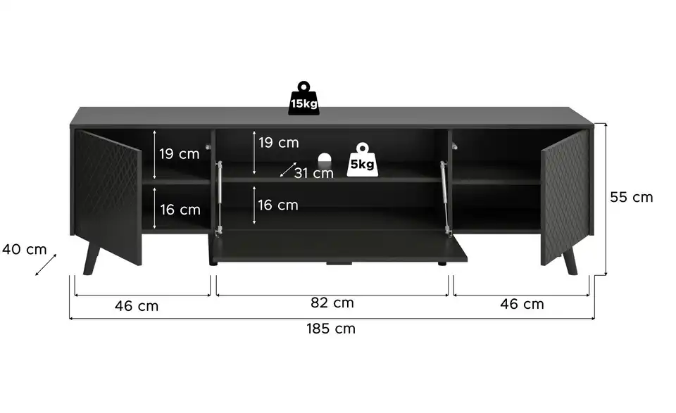 - TV-Lowboard Formello BHT 168,5|57|39,5 cm