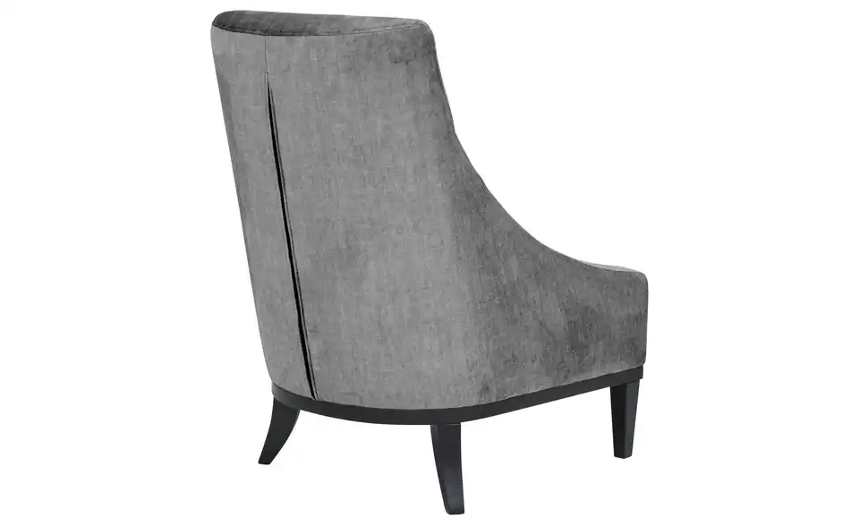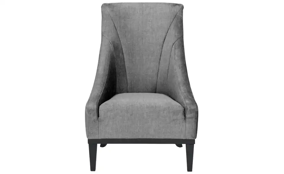 Dieser klassisch elegante Sessel passt in diverse Raumkonzepte. Die dunklen Füße gehen in ein Gestell über und setzen einen gelungenen Kontrast zum Sitzbereich. Hier geht die seitliche Rückenpartie mit einem eleganten Schwung in die Armlehne über.