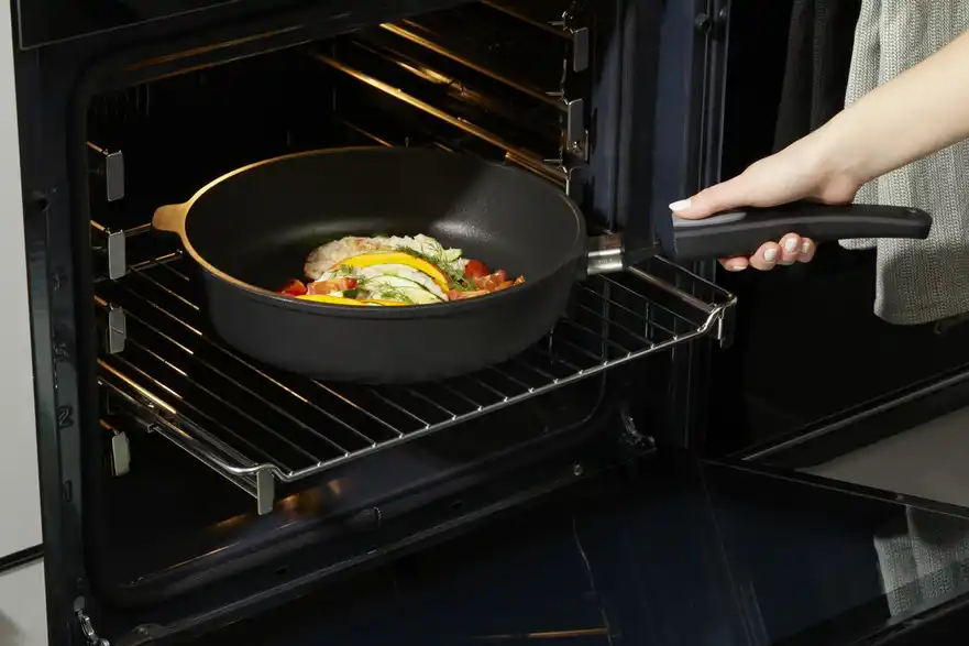 - abnehmbarer Griff per Knopfdruck - perfekt zum Warmhalten im Backofen