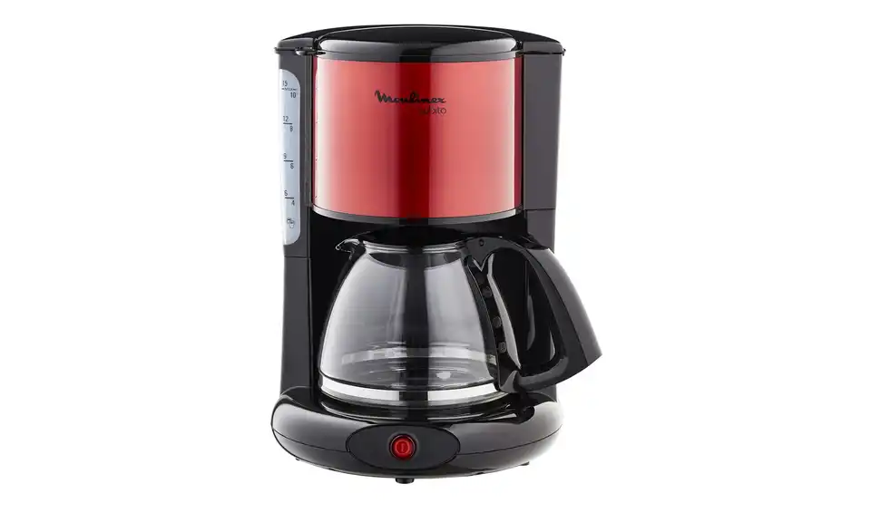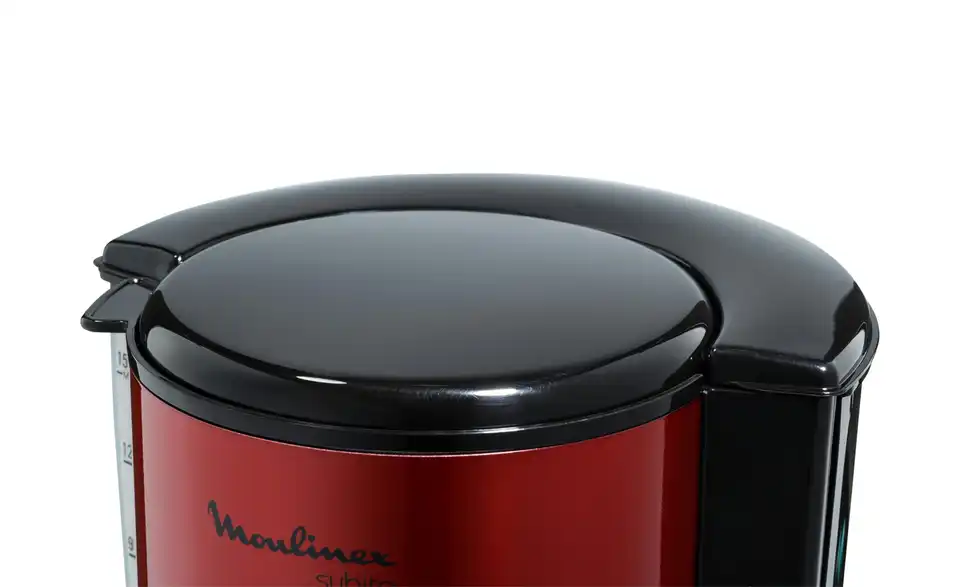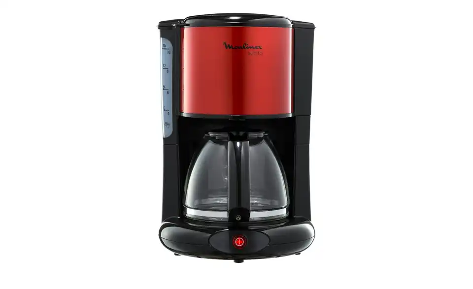 Aromatischen Filterkaffee können Sie mit dem Kaffeeautomat FG 360D aus dem Hause Moulinex zubereiten. Da Sie bis zu zehn Tassen gleichzeitig brühen können, eignet sich das Küchengerät für kleine Haushalte genauso gut wie für große. Über einen rot leuchtenden Druckschalter können Sie es in Betrieb nehmen. Die Wasserstandsanzeige weist auf die bereits eingefüllte Wassermenge hin. Neben dem hohen praktischen Nutzen überzeugt die Kaffeemaschine auch durch eine edle Optik. Ihr Gehäuse ist schwarz, während der Filterbereich in Rot gehalten ist. Dadurch können Sie mit diesem Produkt geschickt Akzente in Ihrer Küche setzen.