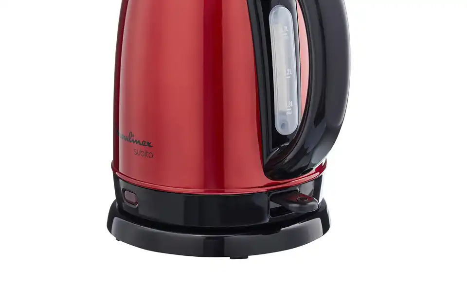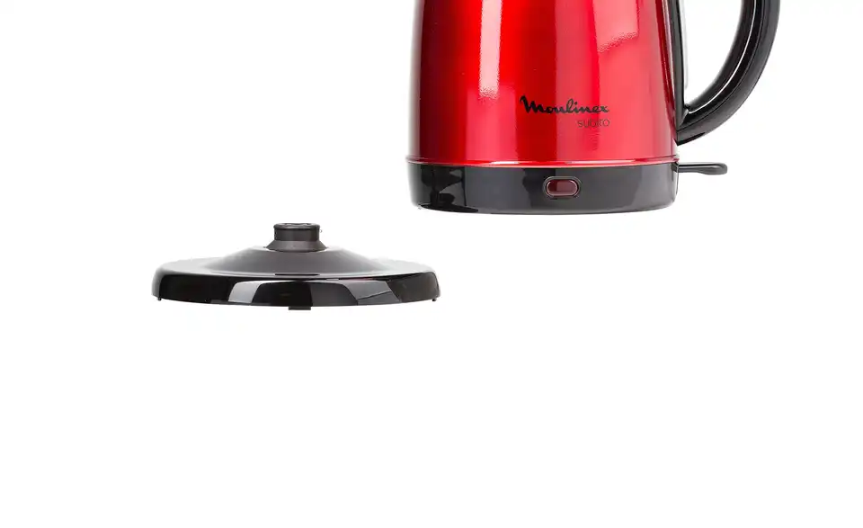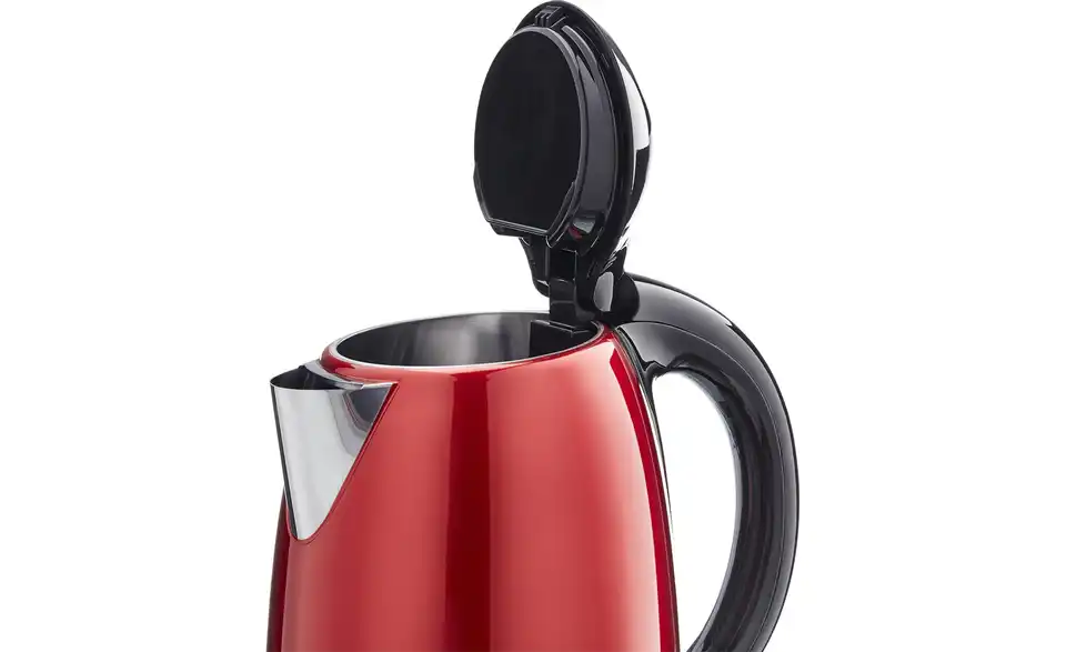 Der moderne Wasserkocher besitzt ein Edelstahlgehäuse in metallic-rot und eine transparente Wasserstandsanzeige. Das kabellose Gerät mit 360° Sockel verfügt zudem über eine verdeckte Heizschlange sowie einen Sicherheitsdeckel und einen Trockengeh-/Überhitzungsschutz. Der integrierte Anti-Kalk-Filter ist herausnehmbar.
