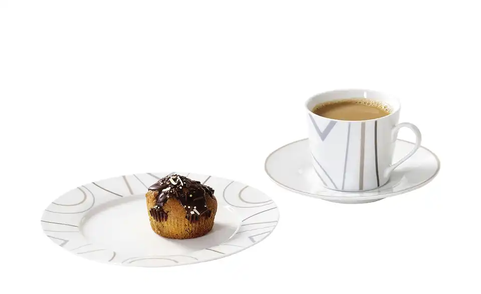 Über den Tellerrand geschaut: Das schwungvolle geometrische Muster scheint regelrecht über die Ränder von Tellern und Tassen hinaus zu wachsen und setzt damit einen raffinierten Akzent auf der schlichten Form des Kaffeeservices graphic. Das harmonische Farbspiel aus sanften Gewürztönen sorgt für einen edlen Touch, so dass mit graphic jederzeit ein ansprechend gedeckter Tisch garantiert ist.