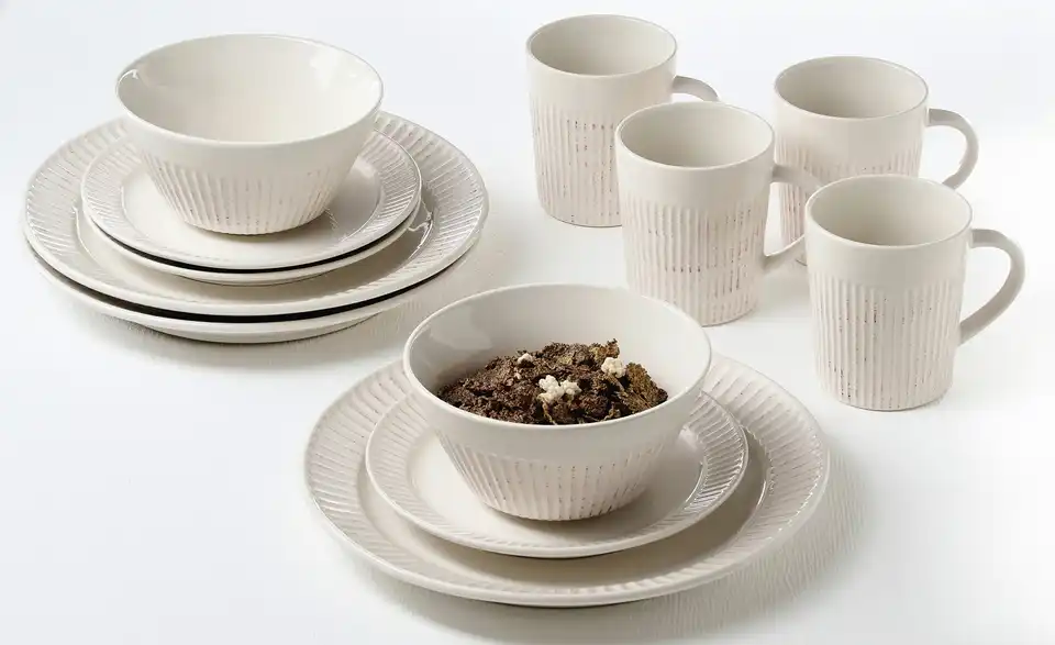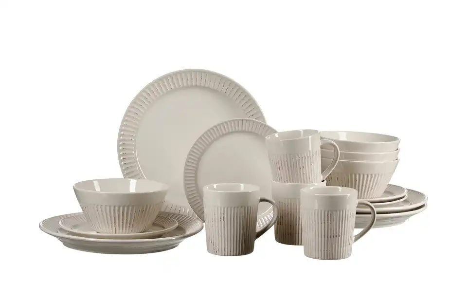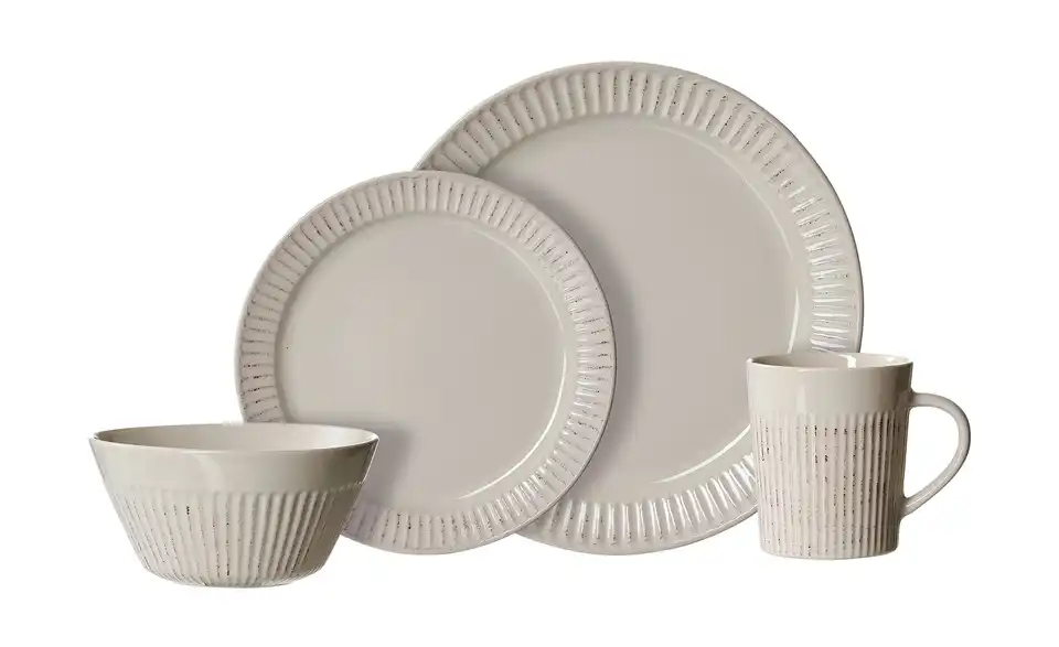 Enthält je 4 Kaffeebecher, Müslischalen, Speiseteller und Dessertteller
