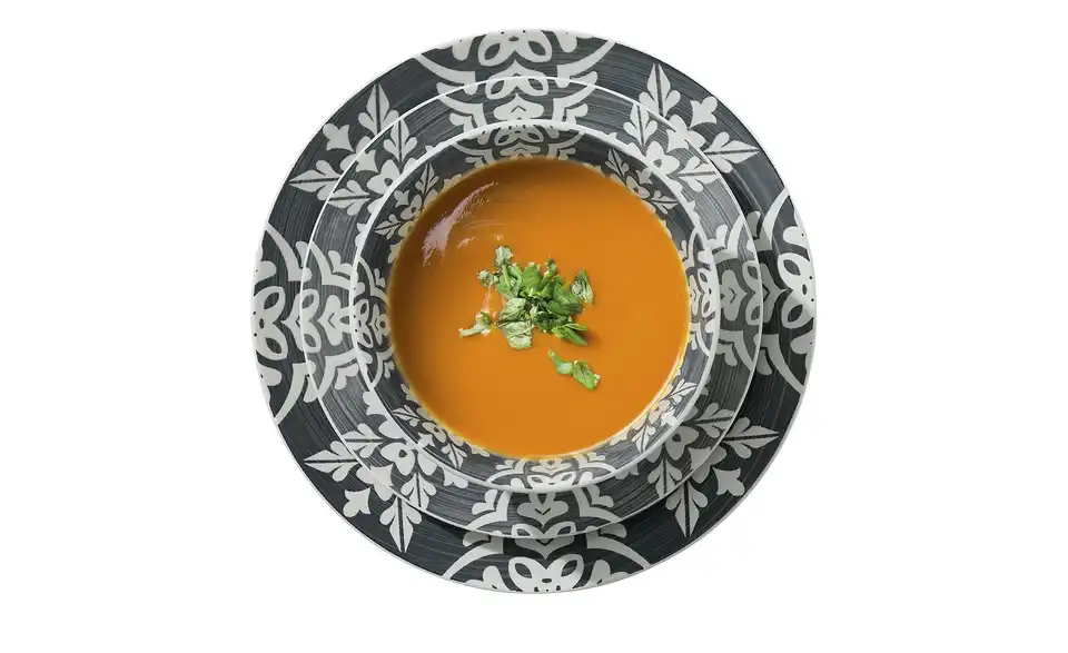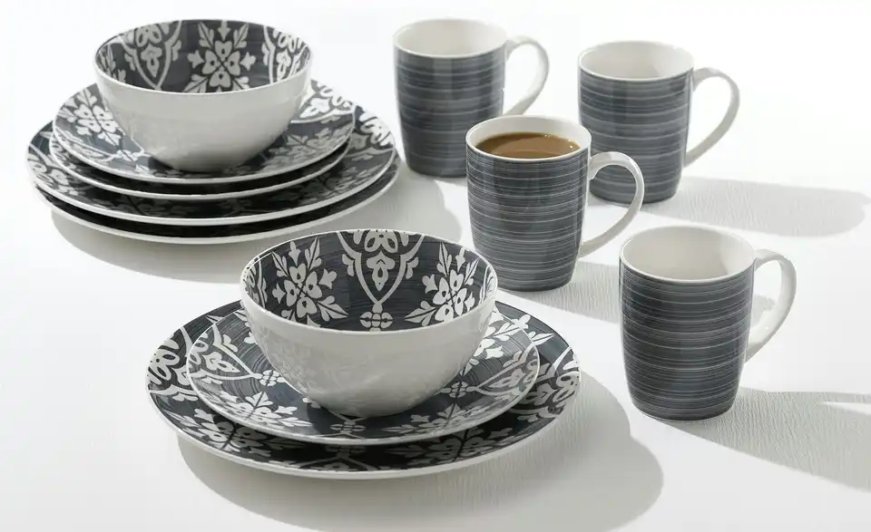 - Enthält je 4 Kaffeebecher 350 ml, Müslischalen, Speiseteller und Dessertteller