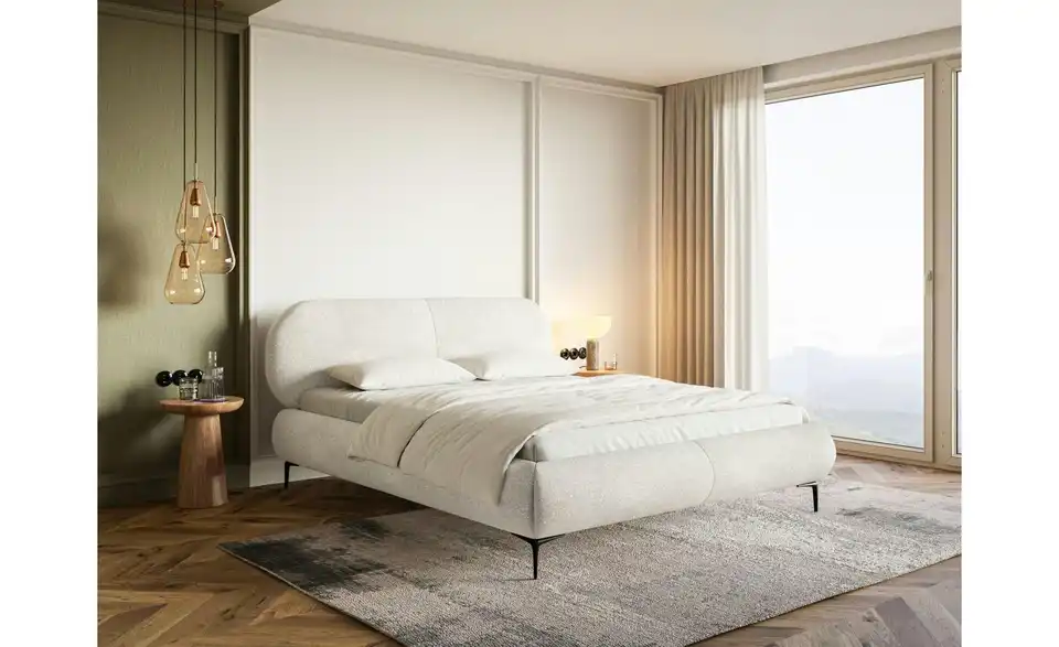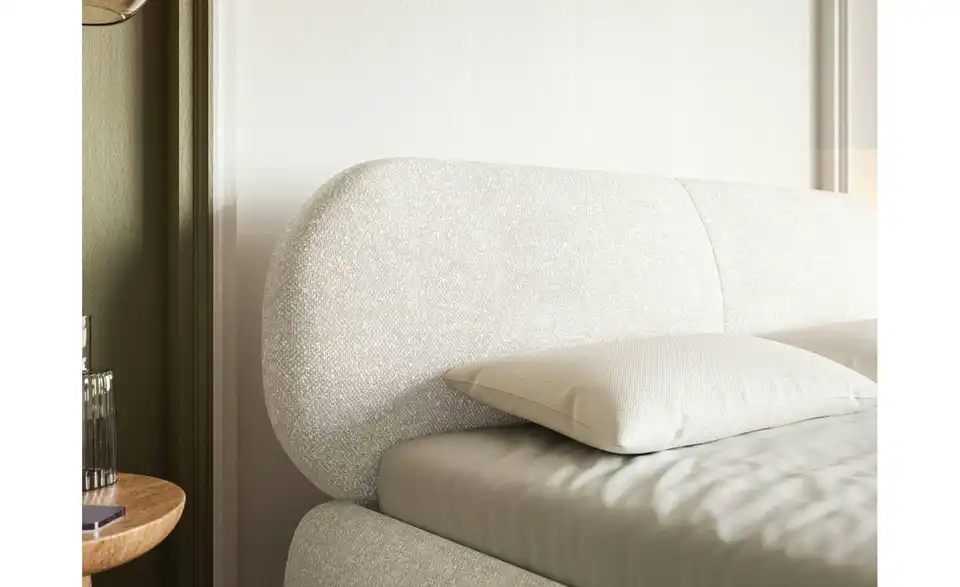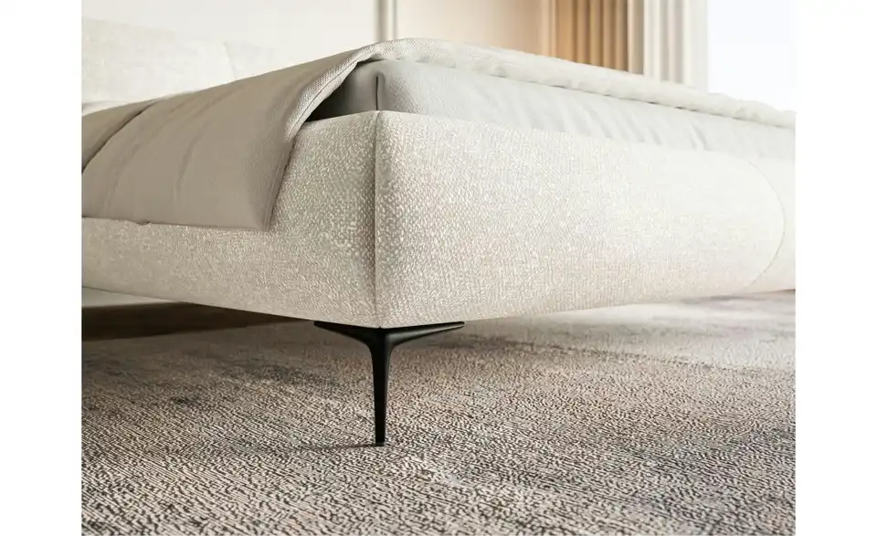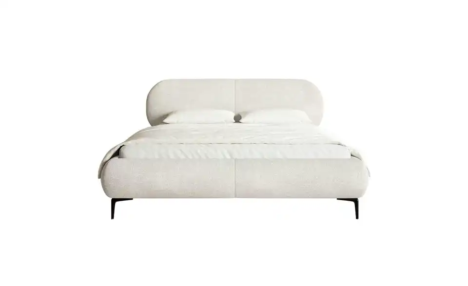 Modern, praktisch und stilsicher – das ist das Polsterbett Ovalle. Rundum gepolstert und mit dem trendigen Chenille-Stoff bezogen, bringt es mehr Wohnlichkeit ins Schlafzimmer. Die dichte Chenillestruktur mit Knoten, die an anmutige Schafwolle erinnern, fühlt sich besonder weich an. Darüber hinaus ist dieser strapazierfähige Bezugstoff wasserabweisend, sodass ausgegossene Flüssigkeiten auf seiner Oberfläche kondensieren. Dank der schlanken, 15 cm hohen Metallbeine wirkt das Bett Ovalle gemütlich, aber nicht zu wuchtig; so ein Doppelbett wird sich bestens in einem Schlafzimmer im minimalistischen Stil und in einer Loftwohnung machen. Das gepolsterte Kopfteil ermöglicht bequemes Zurücklehnen – sei es beim Lesen oder beim Frühstücken im Bett.