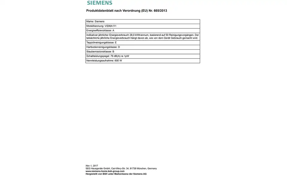 - SIEMENS Bodenstaubsauger VSZ3B212 BHT 28,7|25,5|40 cm