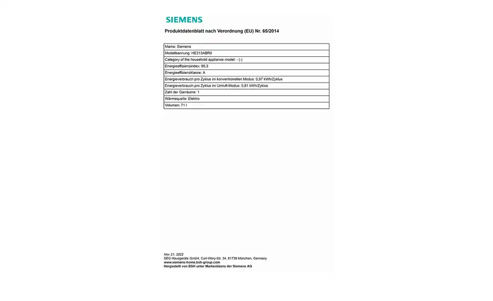 - Energieverbrauch Umluft / Heißluft 0,81 kWh