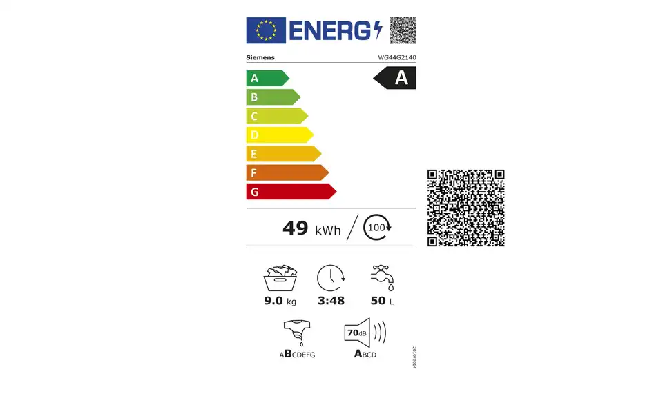 Das EU-Energielabel (EU-Energieverbrauchskennzeichnung) kennzeichnet die Energieeffizienz eines Artikels. Die Reglementierungen des Labels werden von der EU festgelegt und von nationalen Marktüberwachungsbehörden überprüft. Die Skala reicht von A bis G, wobei nur die Werte A, B und C von uns als nachhaltig betrachtet werden.