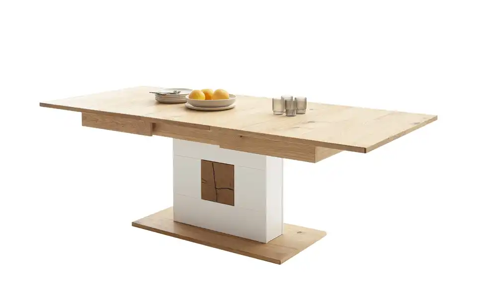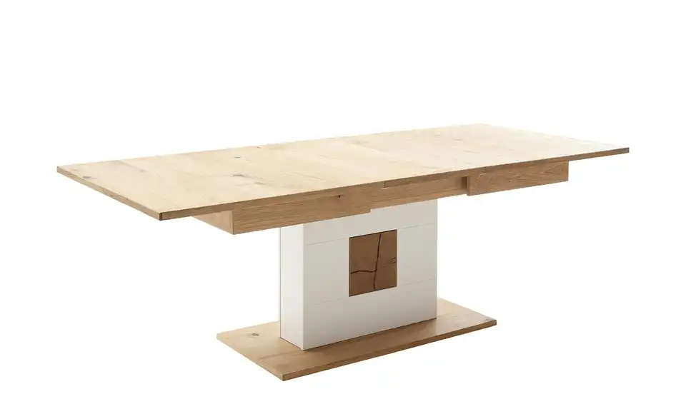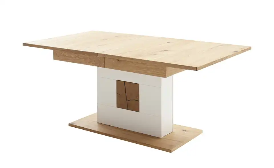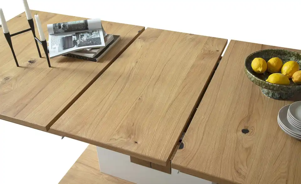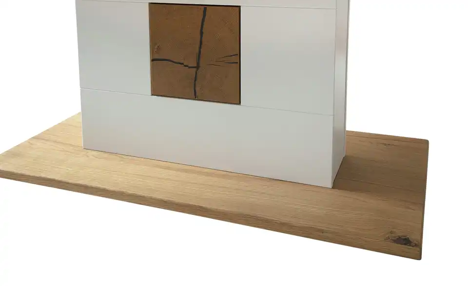 - Mehr zu Material Tischplatte aus Ast/Balkeneiche furniert in Wildeiche geölt Säule aus Holzwerkstoff in Soft White lackiert / Hirnholzblöcke aus Ast/Balkeneiche massiv in Wildeiche geölt Bodenplatte aus Eiche furniert in Wildeiche geölt