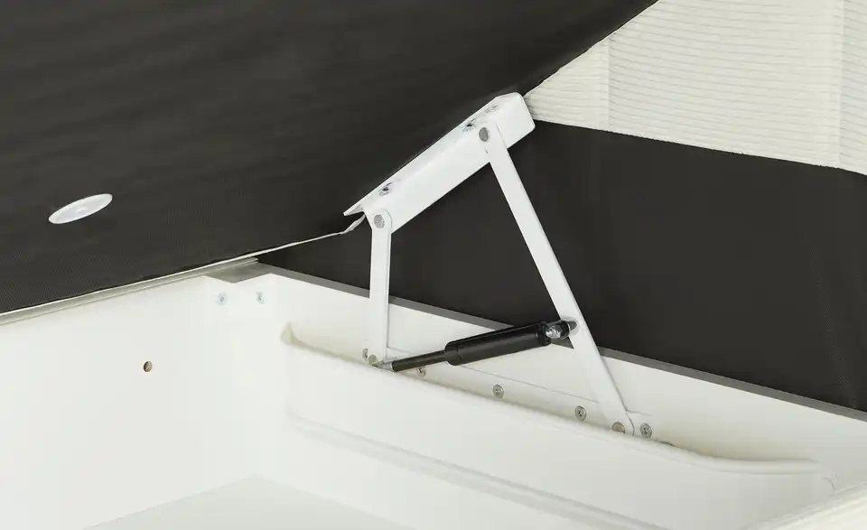 - Mehr zu Ausstattung / Funktion 5 Liegezonen inkl. Bettkastenfunktion und Bodenplatte geschlossen, Queröffnung mit Gasdruckfedern