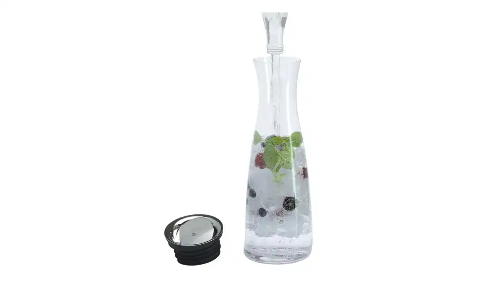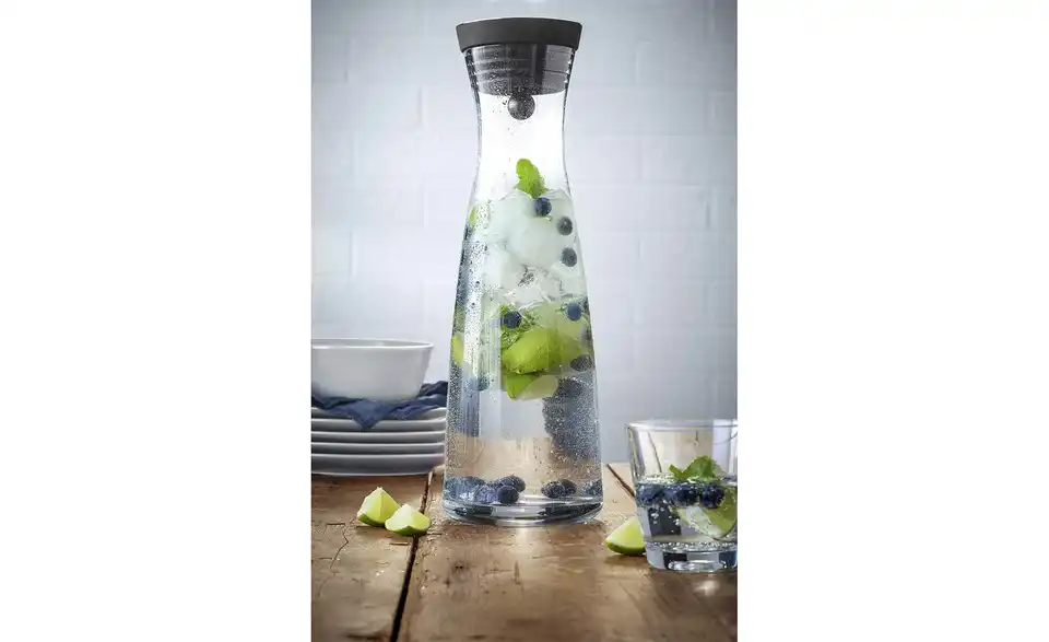 Schlank und schlicht ist die gläserne Wasserkaraffe von WMF eine Bereicherung für jeden Haushalt. Der Deckel aus Cromargan® und Kunststoff besitzt eine automatische Verschlusstechnik, die funktionell und formschön ist.