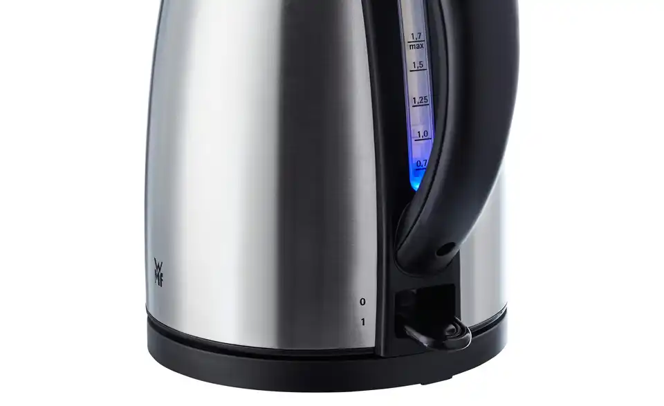 Der Wasserkocher aus Edelstahl verfügt über ein verdecktes Heizelement und eine beleuchtete Wasserstandsanzeige. Durch den Soft-Touch-Griff und die Deckelverriegelung ist er besonders benutzerfreundlich. Das Küchengerät besitzt zudem einen Trockenlauf- und Überhitzungsschutz sowie eine Kochstoppautomatik für mehr Schutz und Sicherheit. Im Gerätesockel befindet sich eine Kabelaufwicklung.