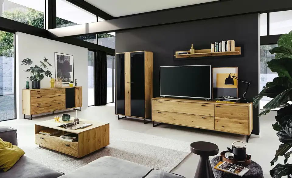 - Mehr zu Material Front aus Massivholz in Wildeiche geölt Korpus und Tischplatte aus Holzwerkstoff furniert in Wildeiche geölt / innen Wildeiche (Nachbildung) Griffe aus Metall in Anthrazit
