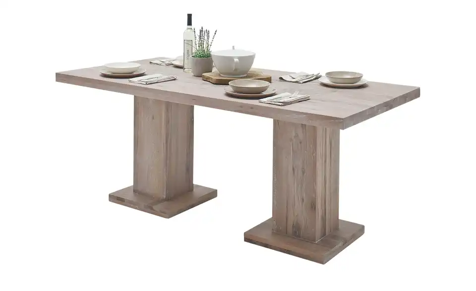 - Mehr zu Ausführung Jeder Tisch ein Unikat. Risse, Druckstellen, Äste, Löcher und Farbunterschiede sind gewollt. Sichtbare Säulenabsetzung in der Tischplatte